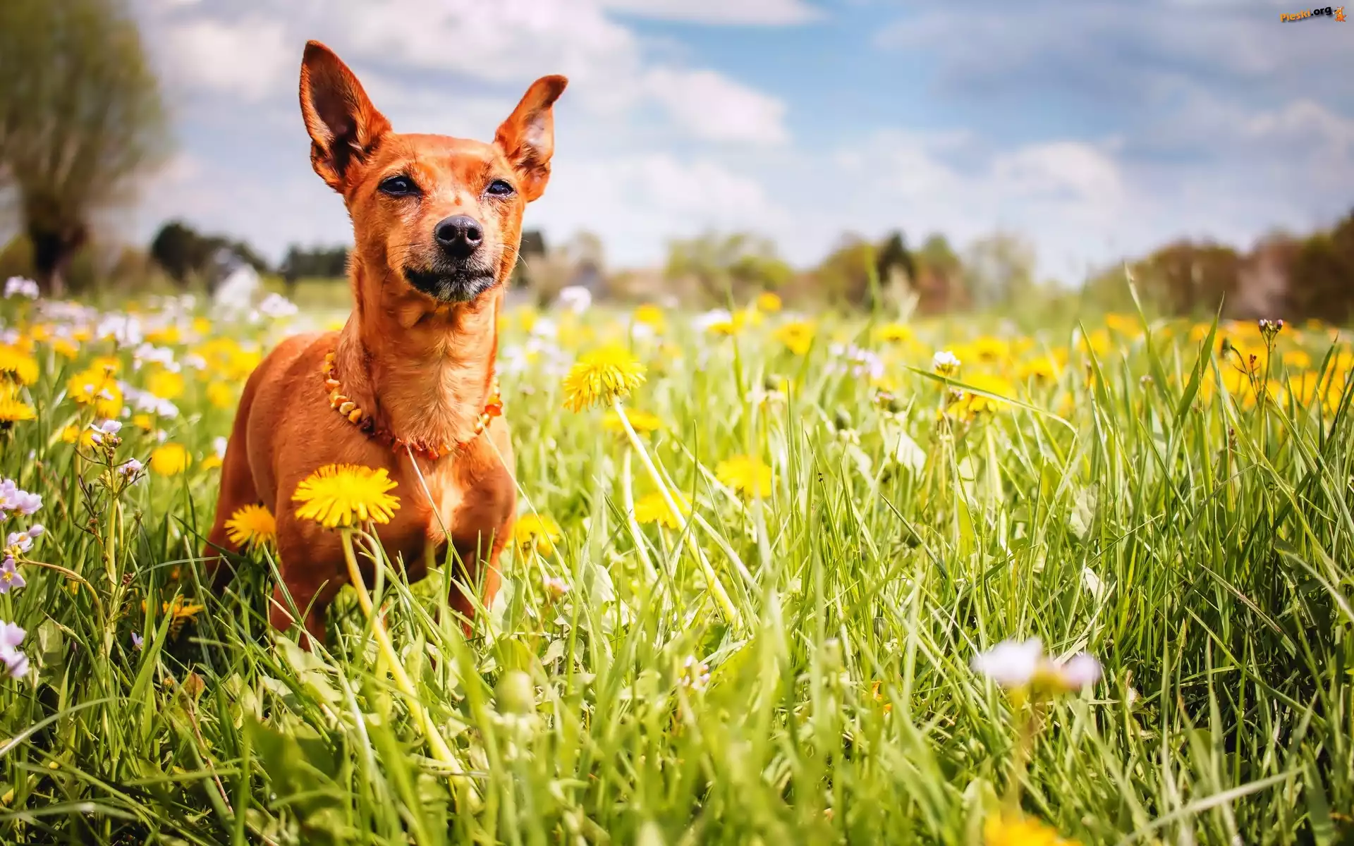 Suka, szczeniaki, Duy Munsterlander Owczarek, Szkocki, nieg Wyy, Woskie, Trawnik Pies, Zabawa Mordka, Pies, Spaniel kontynentalny miniaturowy Papillon, Licie Kobieta, Pies, Szczeniak Border collie Pies, Hawaczyk, Bieg Czarny owczarek niemiecki, Pies, nieg Szpic miniaturowy, Koszyk, Tulipany, Piesek, Pomeranian