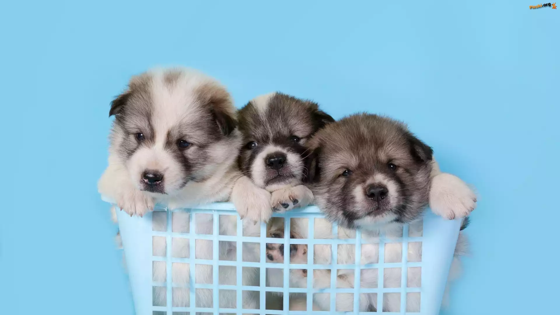 Akita, Psy, Trzy, Szczeniaki, Koszyk