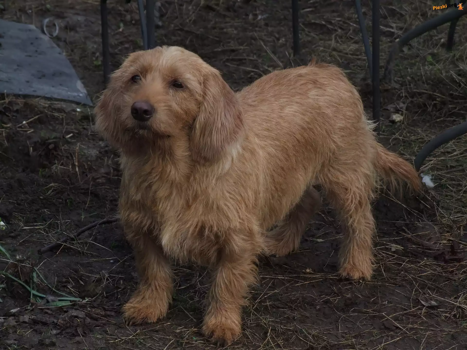 skulony, Basset Fauve de Bretagne Basset Fauve de Bretagne Basset Fauve de Bretagne, dwa, słodkie, schody