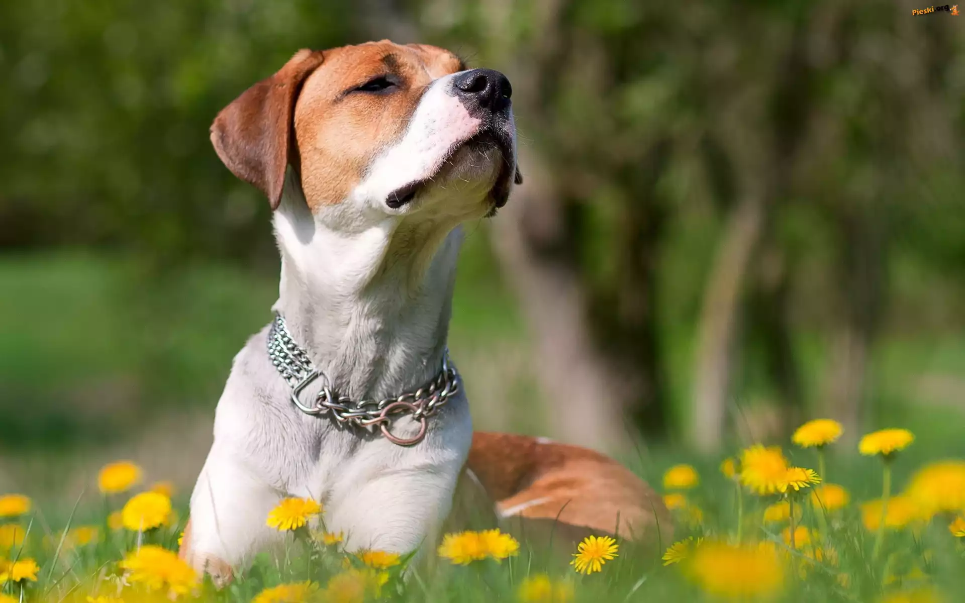 Biało, Żółte, Łąka, Rudy, Pies, Mlecze, Pieski