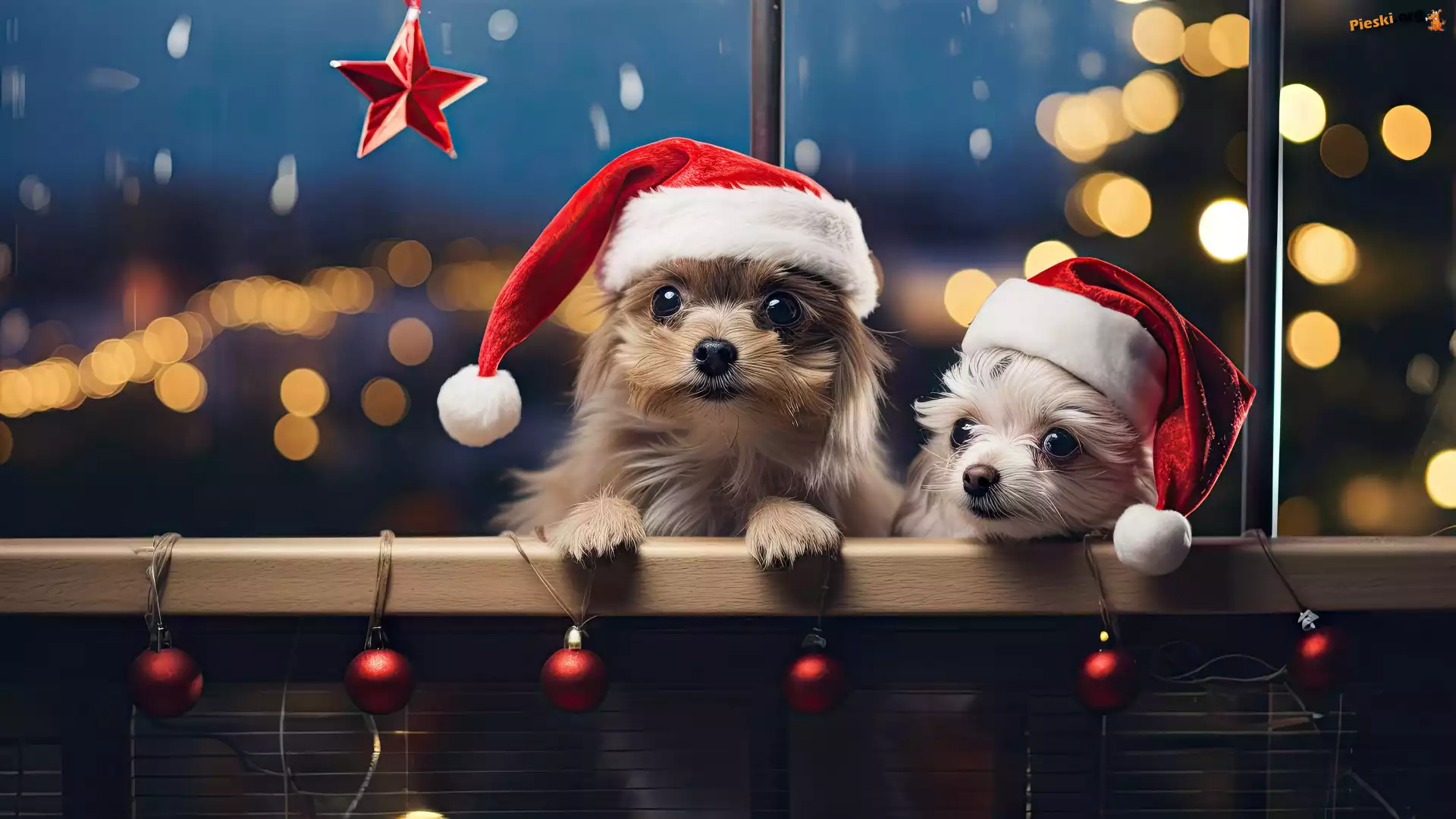 Mikołaja, Dwa, Psy, Bombki, Czapki, Pieski