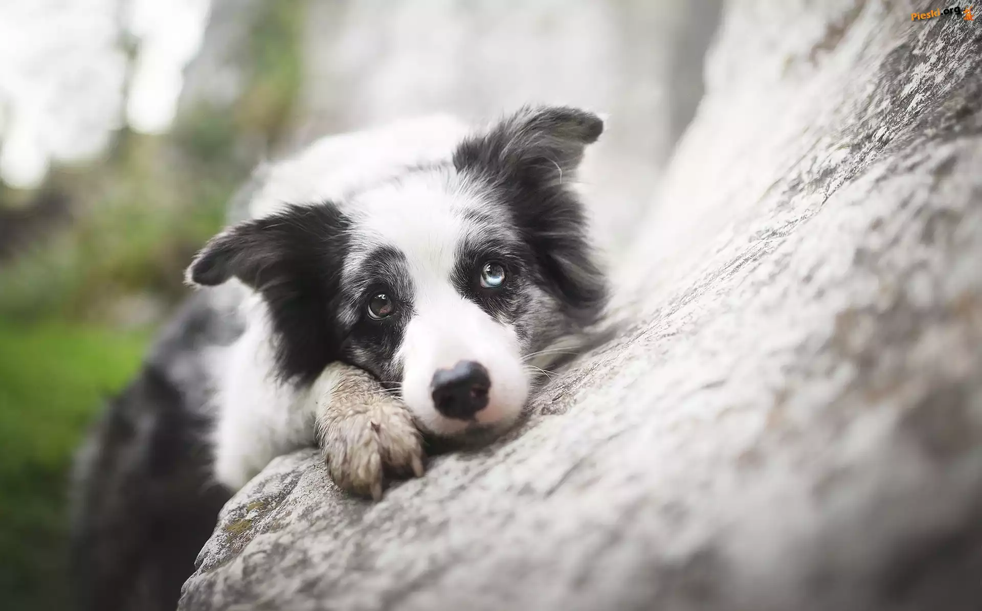 Border collie, Pyszczek, Kamień