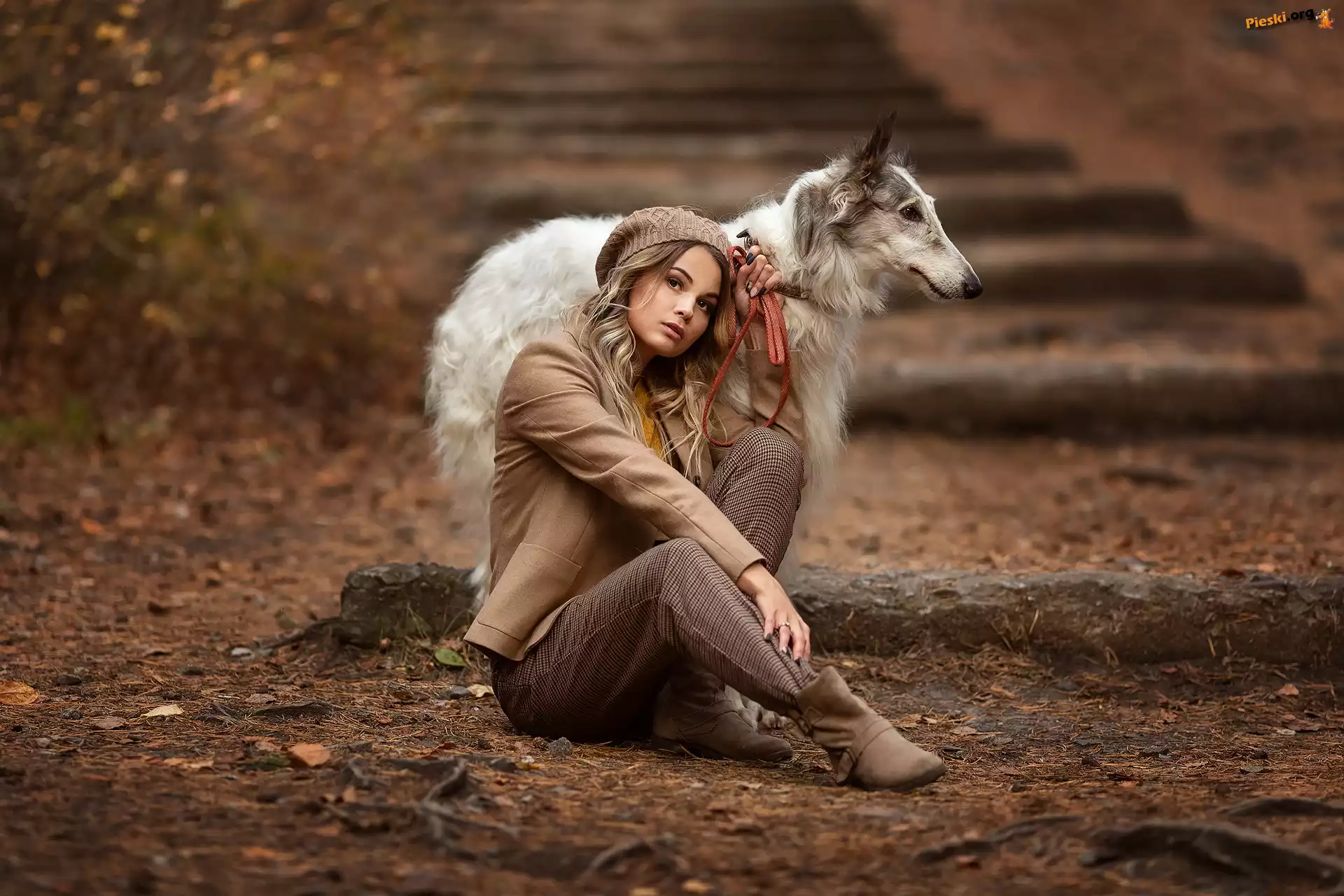 Borzoj, Kobieta, Pies, Chart rosyjski, Pieski