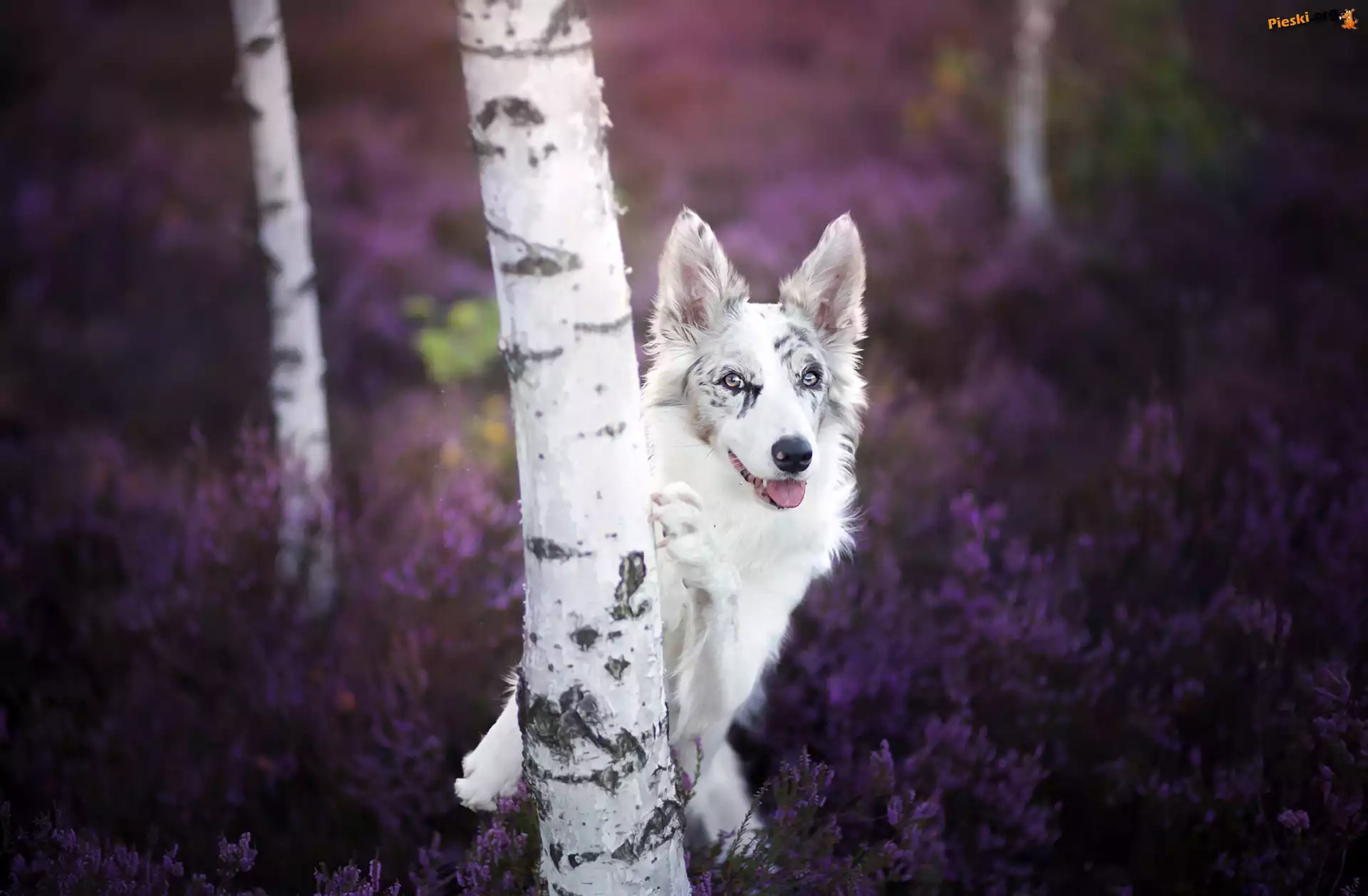 Brzozy, Border collie, Las, Wrzos, Pieski
