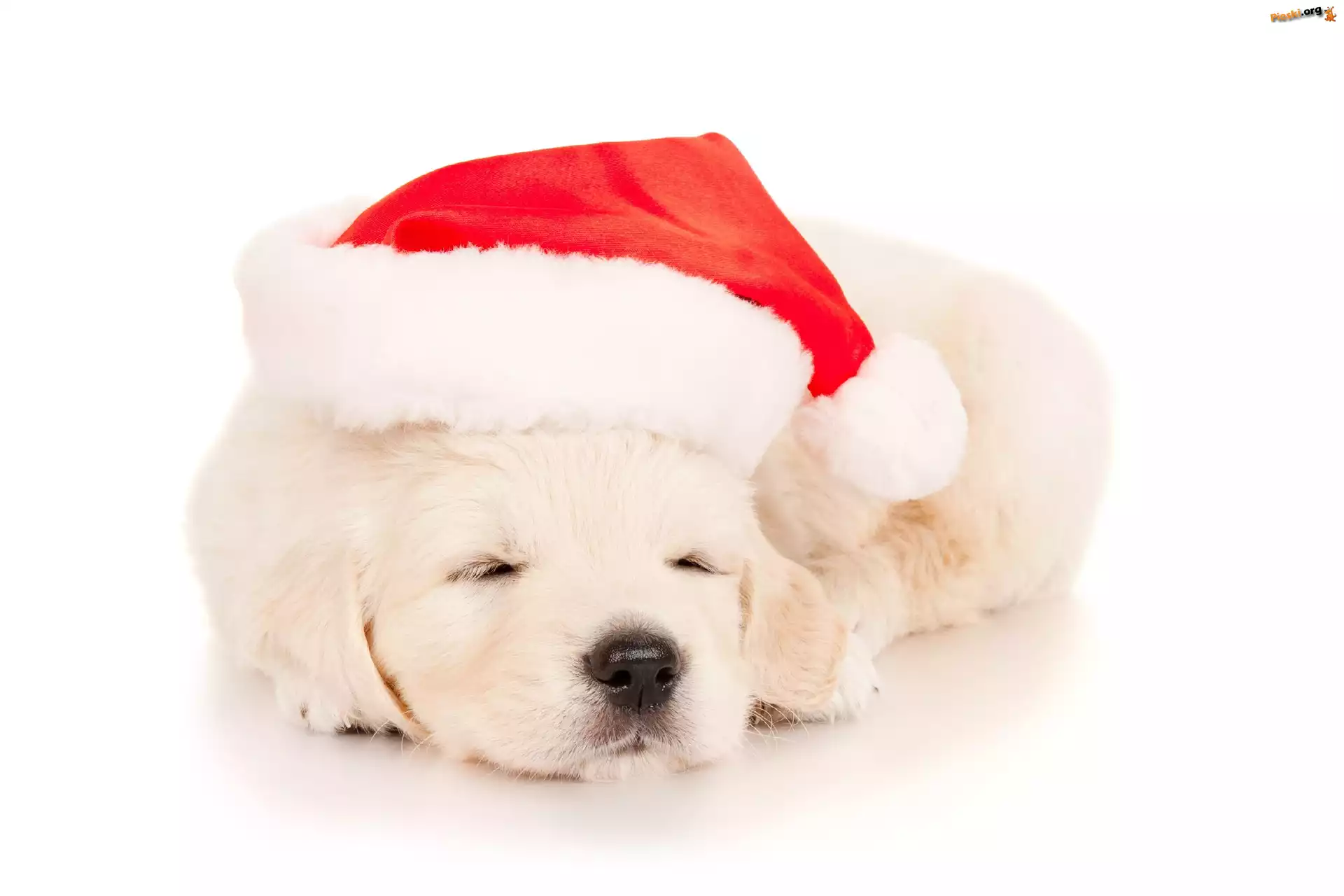 Czapka, Szczeniaczek, Golden retriever, Mikołaja, Pieski