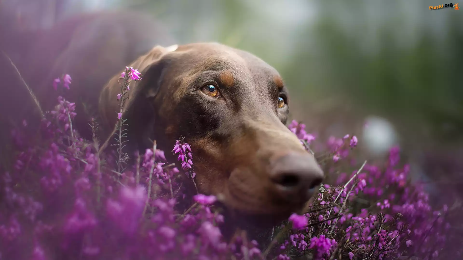 Doberman, Mordka, Pies, Brązowy, Wrzosy