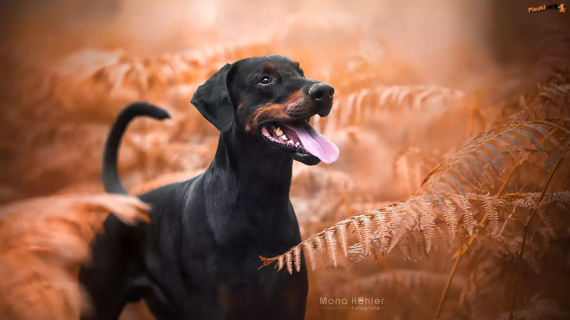 Pies, Doberman, Paprocie, Pieski