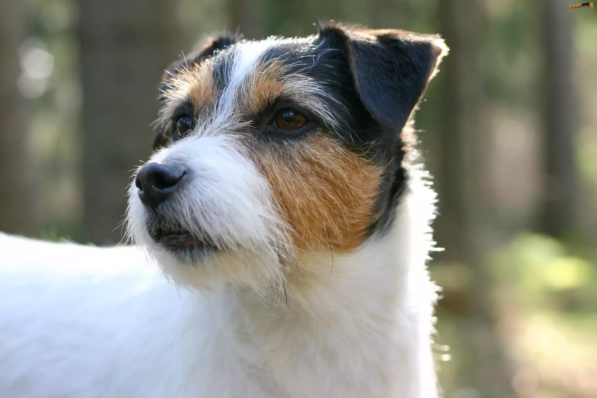 Parson Russell Terrier, most Domy, Ubranko, Parson Russell Terrier Parson Russell Terrier, Las głowa, Parson Russell Terriera Polana, Chłopiec, Mały, Szczeniaczek, Las