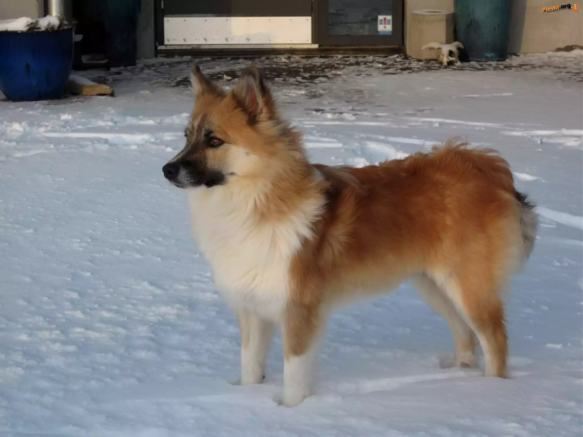 Islandzki szpic pasterski, śnieg, Pieski