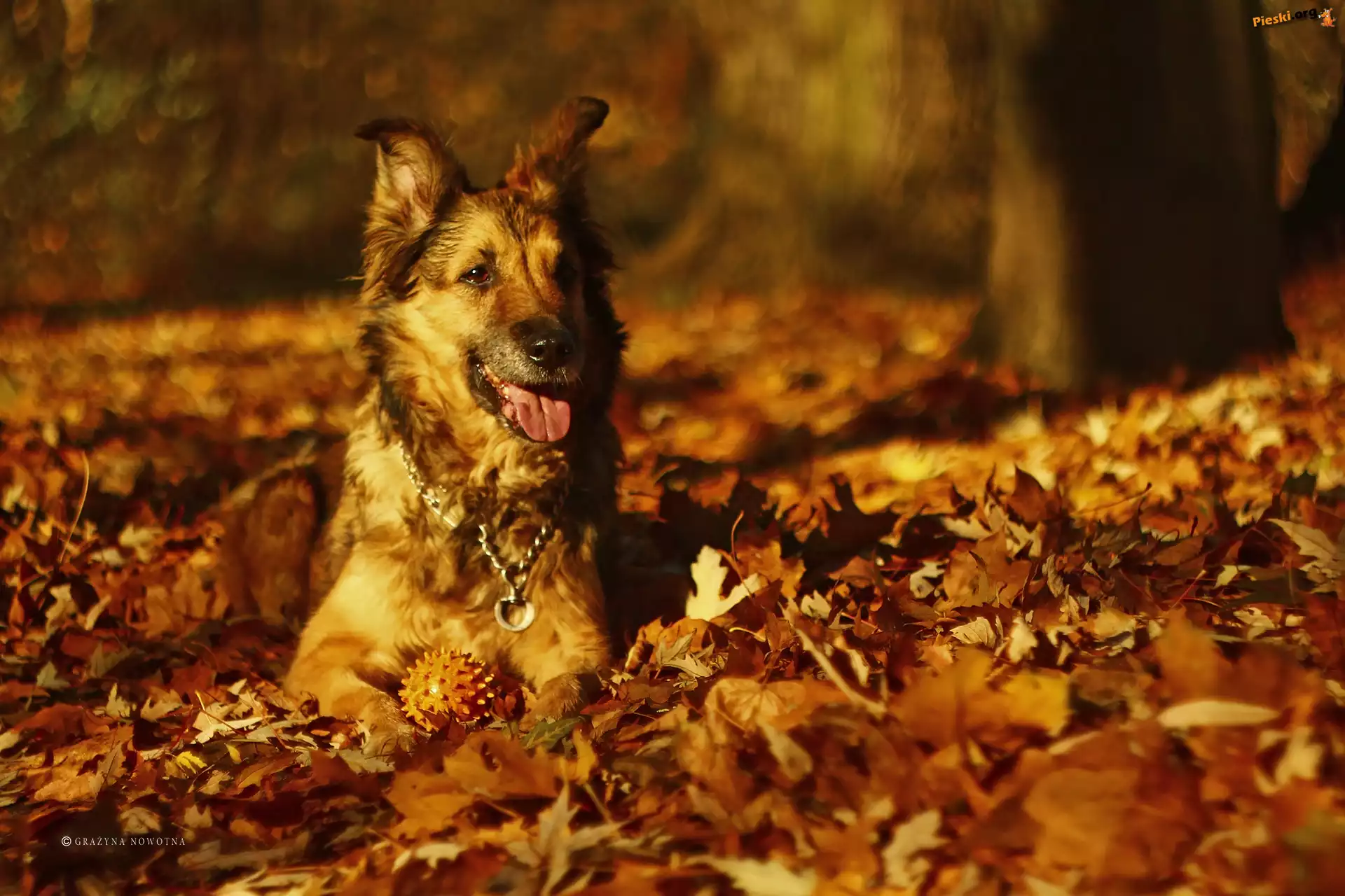 Jesień, Suczka, Pies, Shila, Liście, Pieski
