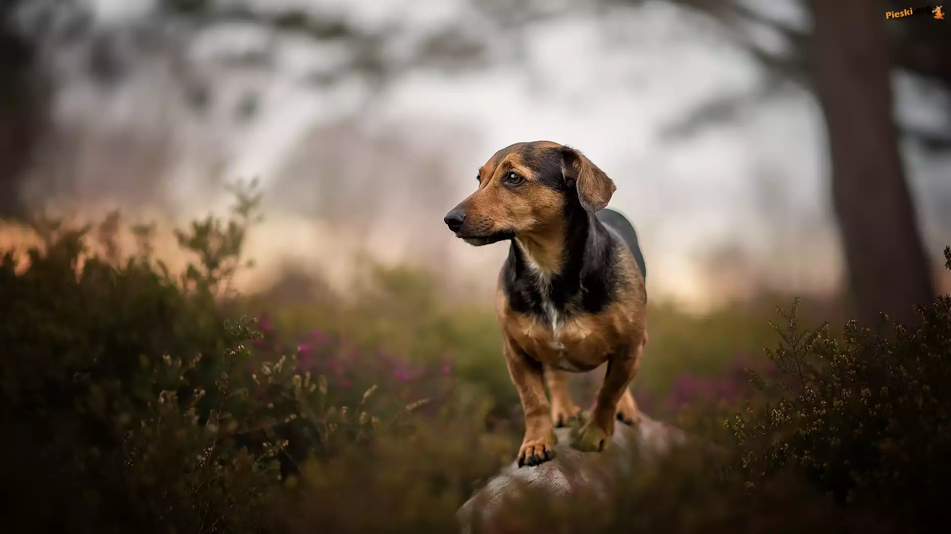 Pies, Kłoda, Wrzosy, Pieski