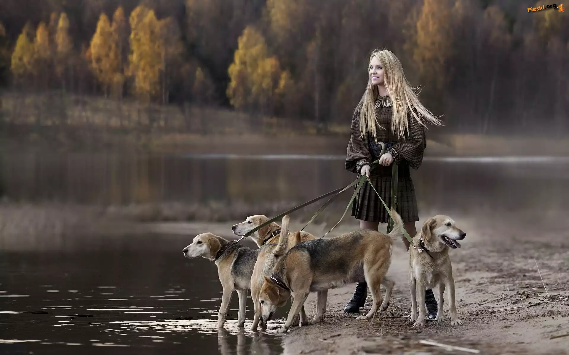 Kobieta, Psy, Myśliwskie, Woda, Pieski