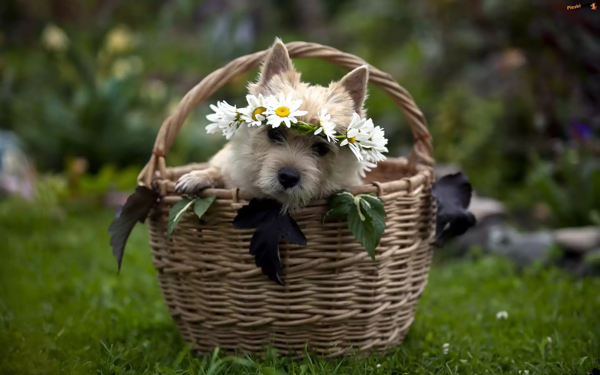 Suka, szczeniaki, Duy Munsterlander Owczarek, Szkocki, nieg Wyy, Woskie, Trawnik Pies, Zabawa Mordka, Pies, Spaniel kontynentalny miniaturowy Papillon, Licie Kobieta, Pies, Szczeniak Border collie Pies, Hawaczyk, Bieg Czarny owczarek niemiecki, Pies, nieg Szpic miniaturowy, Koszyk, Tulipany, Piesek, Pomeranian