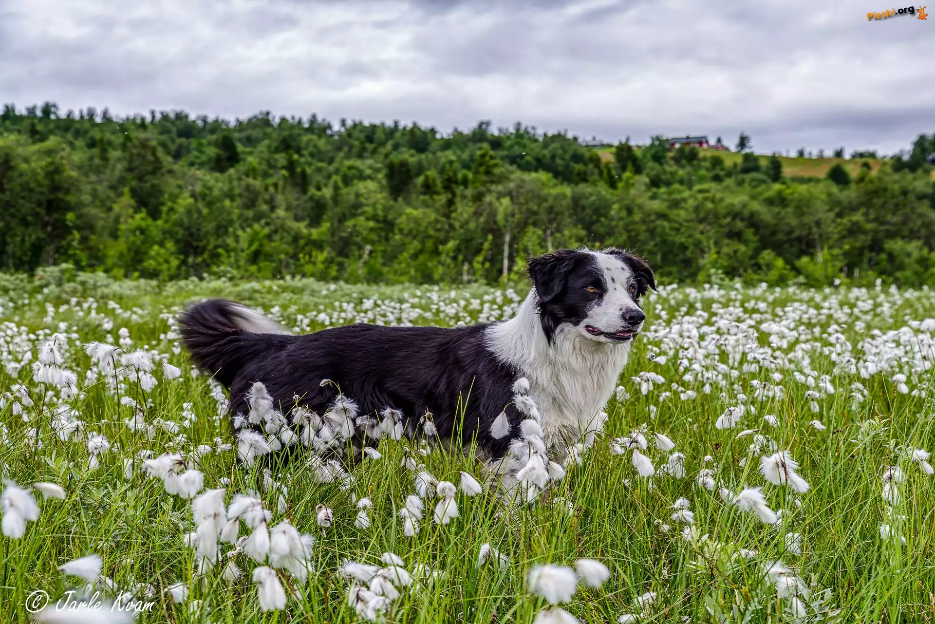 Drzewa, Bordier collie, Łąka, Pies, Rośliny, Trawa, Pieski