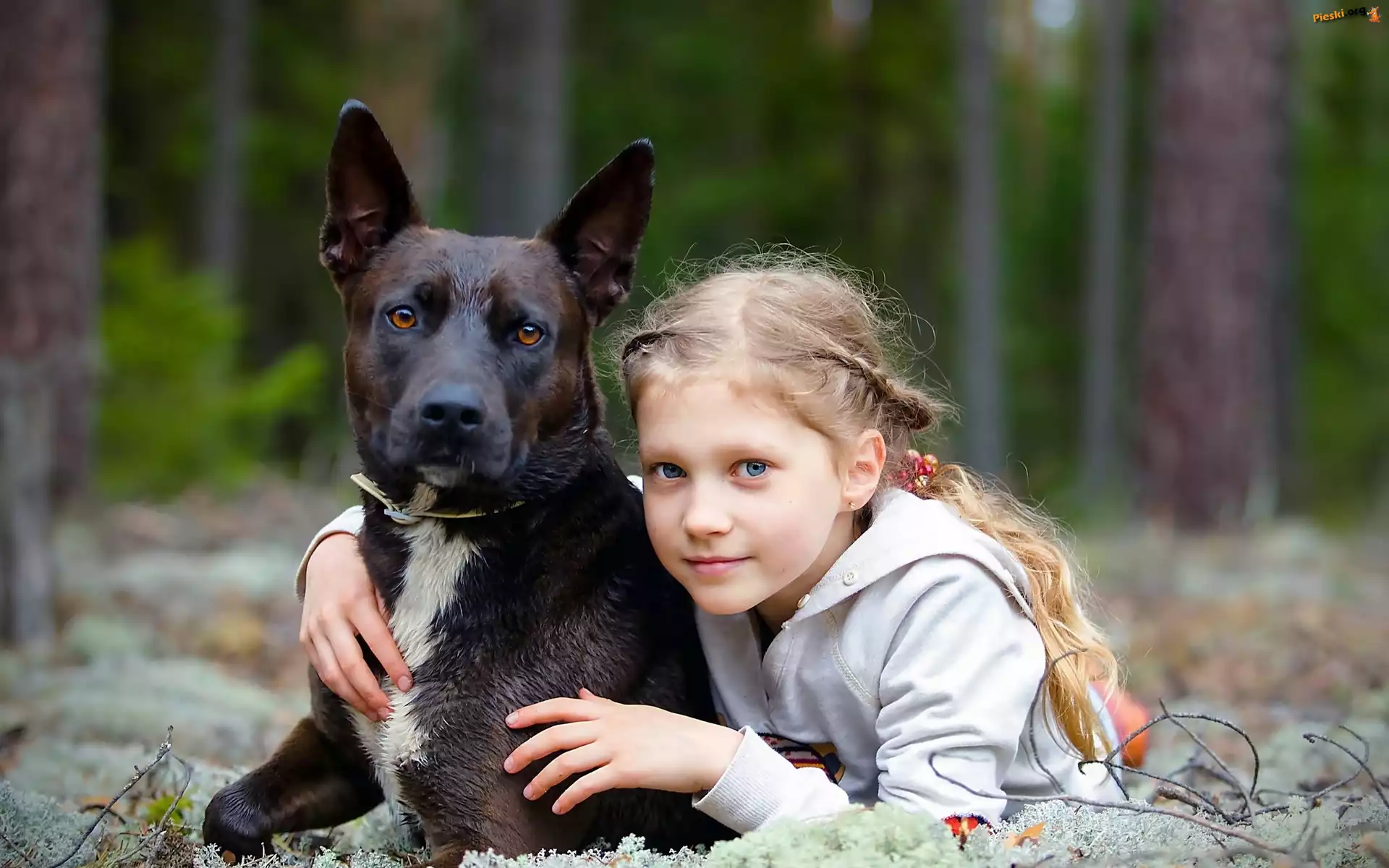 Las, Dziewczynka, Pies, Przyjaźń, Pieski