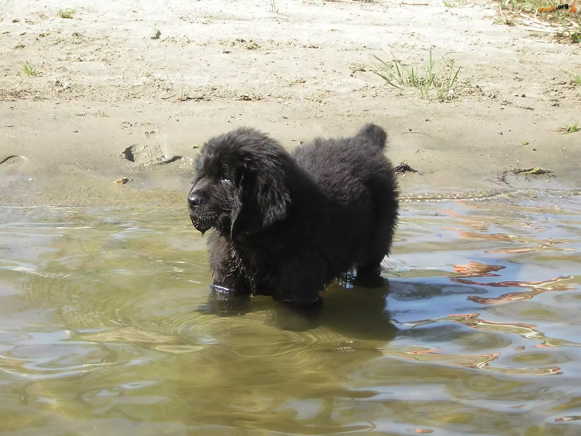 Długa, Pies, Czarna, Sierść Dwa, Szczeniaczki, Nowofundland Nowofundland, woda szczeniak nowofundlanda Kwiaty, Pies, Łąka, Nowofundland Nowofundland, Pysk brązowy, Nowofundland