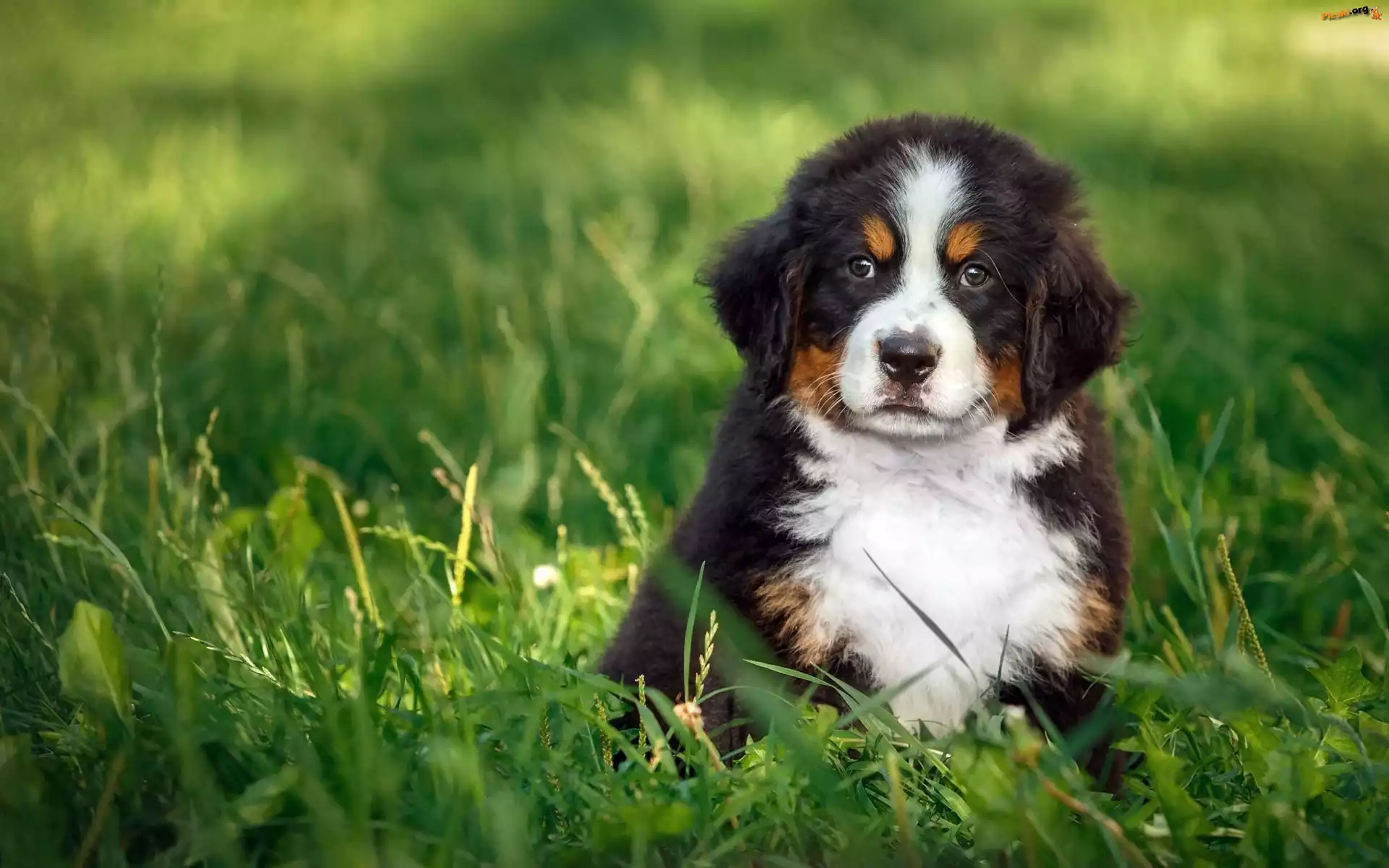 Pasterski, Berneński, Szczeniaczek, Pies, Łąka