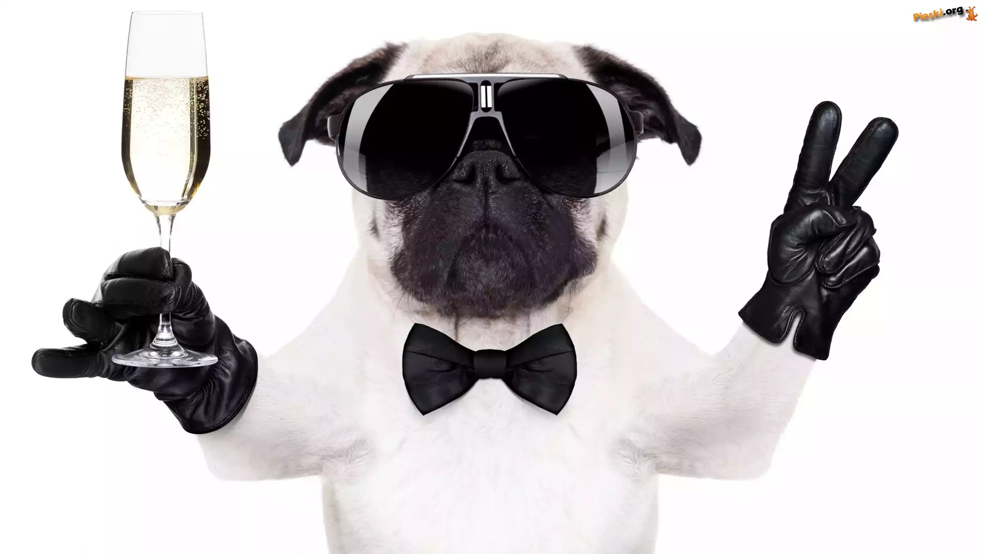 Pies, Lampka, Rękawice, Mops, Okulary, Szampan