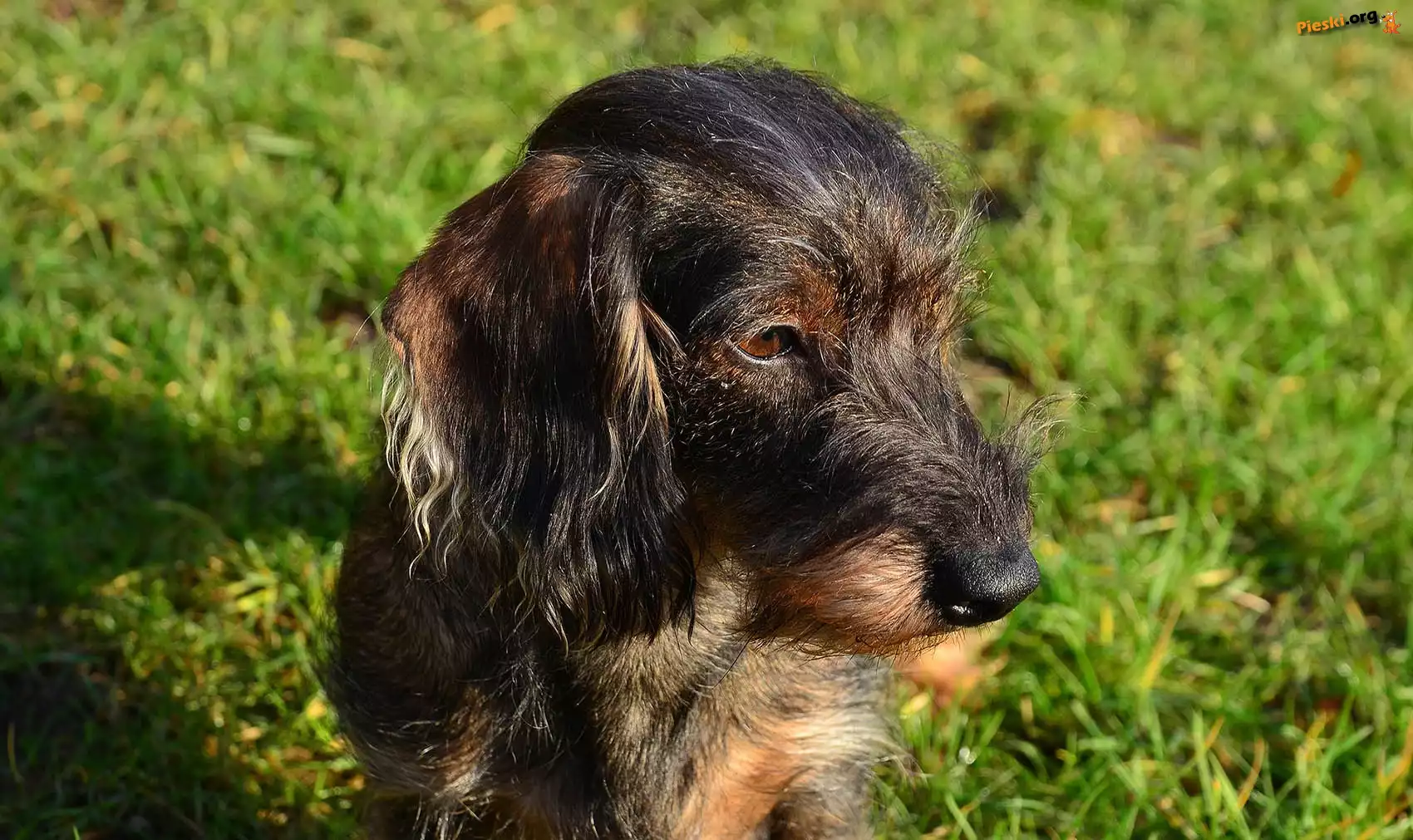 Jamnik, Szorstkowłosy Spojrzenie, Piesek, Słodki, Szczenię, Jamnik szorstkowłosy Pies, Piesek, Trawa