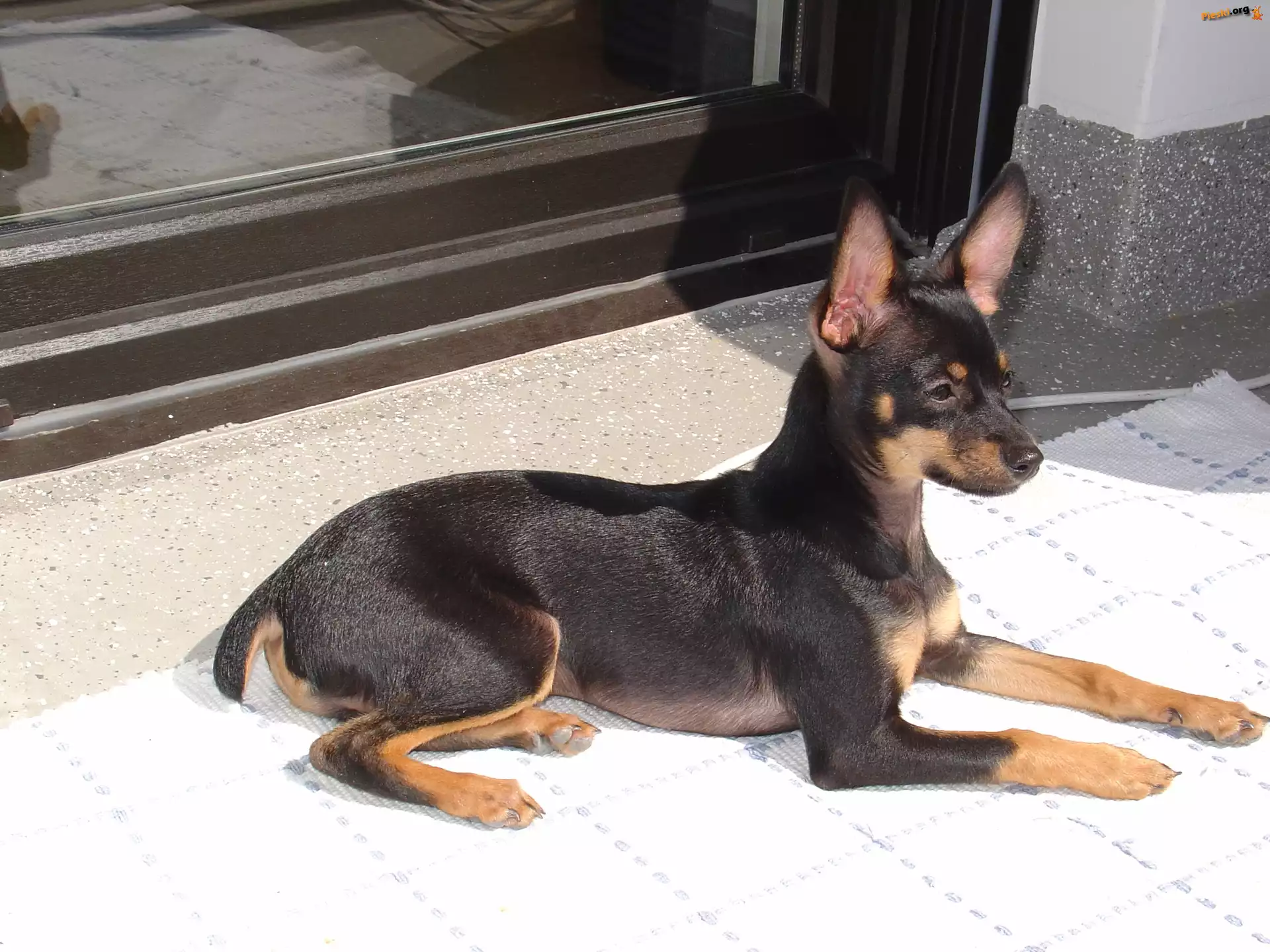 Pinczer miniaturowy, postawione, uszy, Pieski
