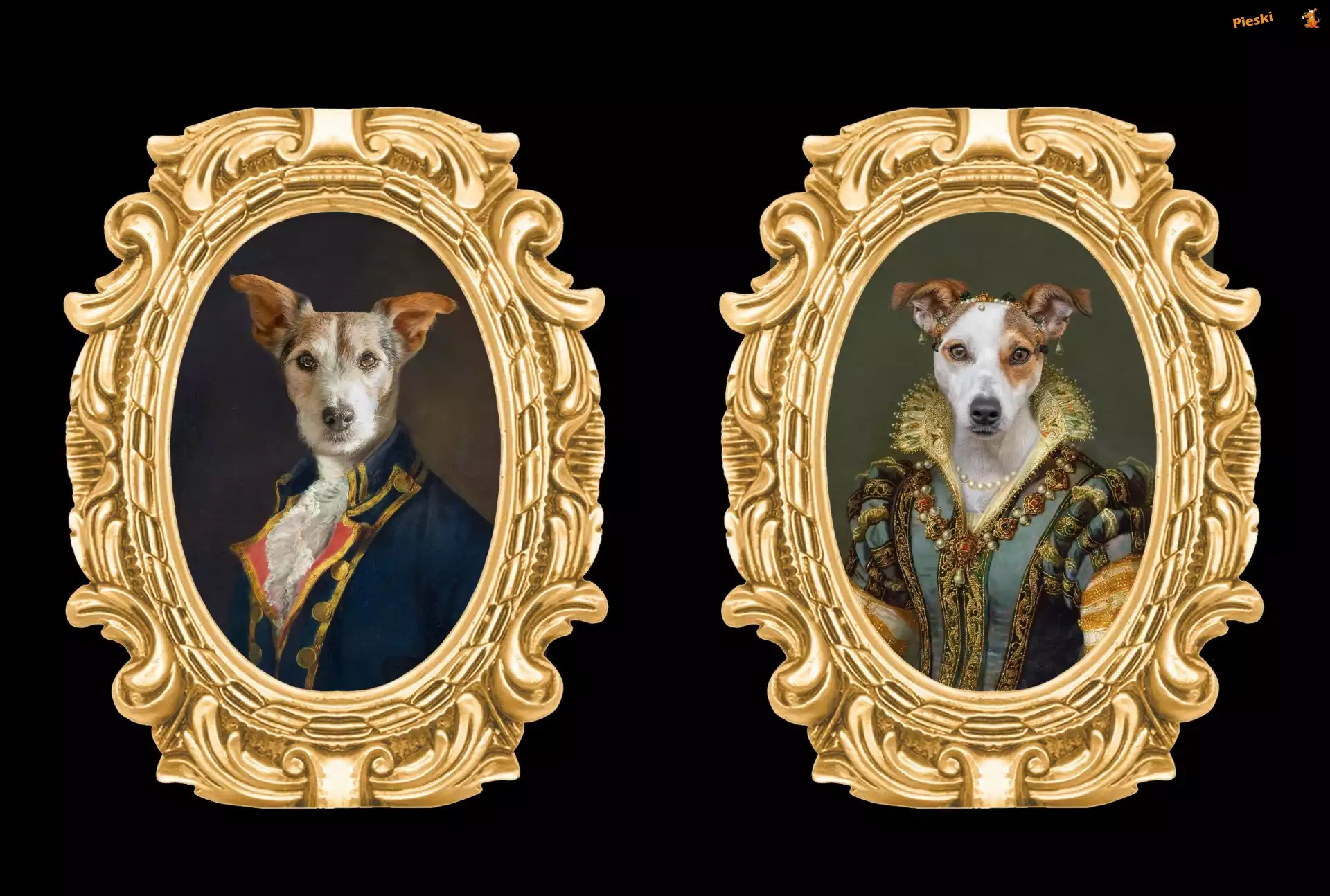 Stroje, Portrety, Czarne, Ramy, Psy, Złote, Tło, Pieski