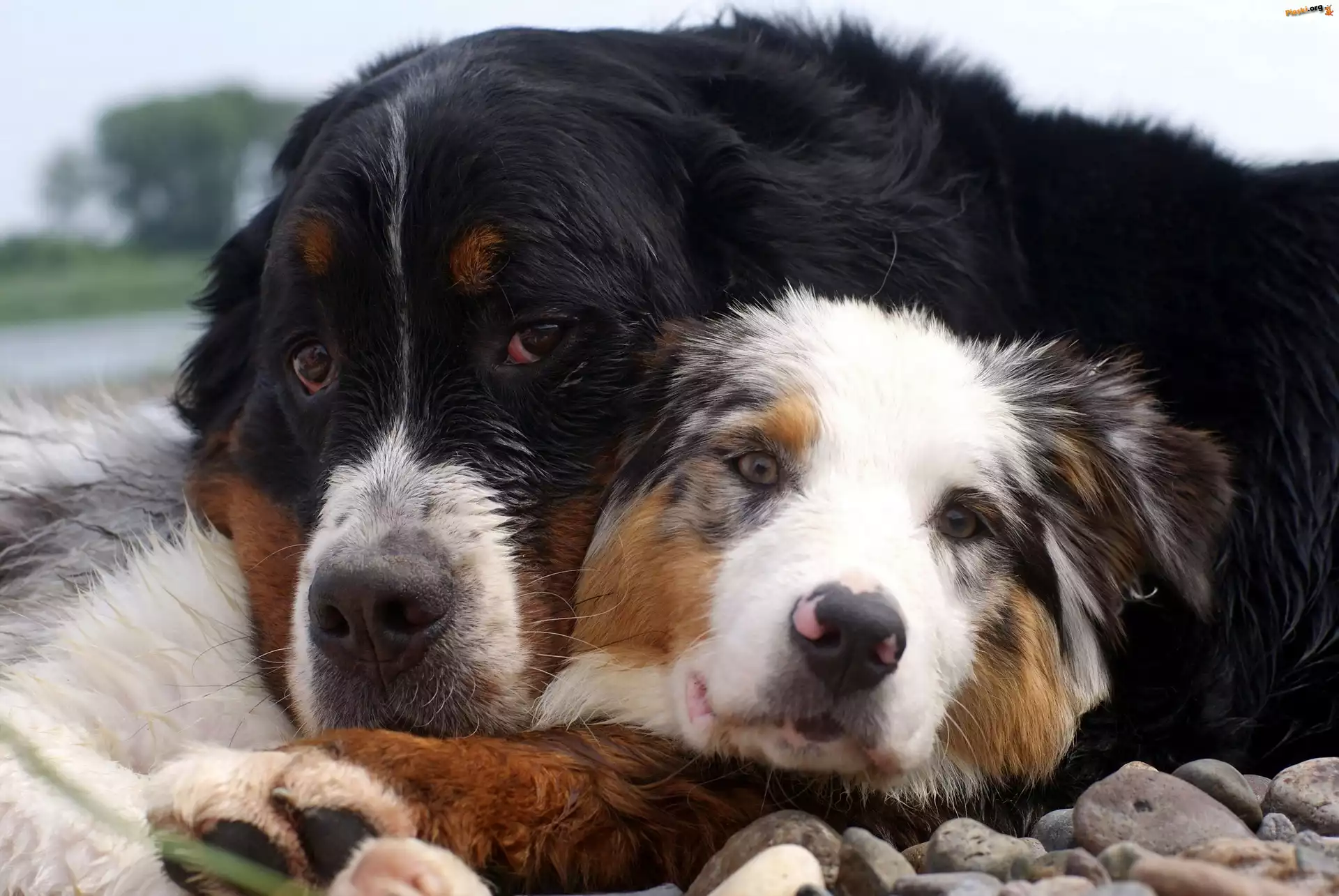 Berneński Pies Pasterski, Psy, Dwa, Kamienie, Owczarek australijski