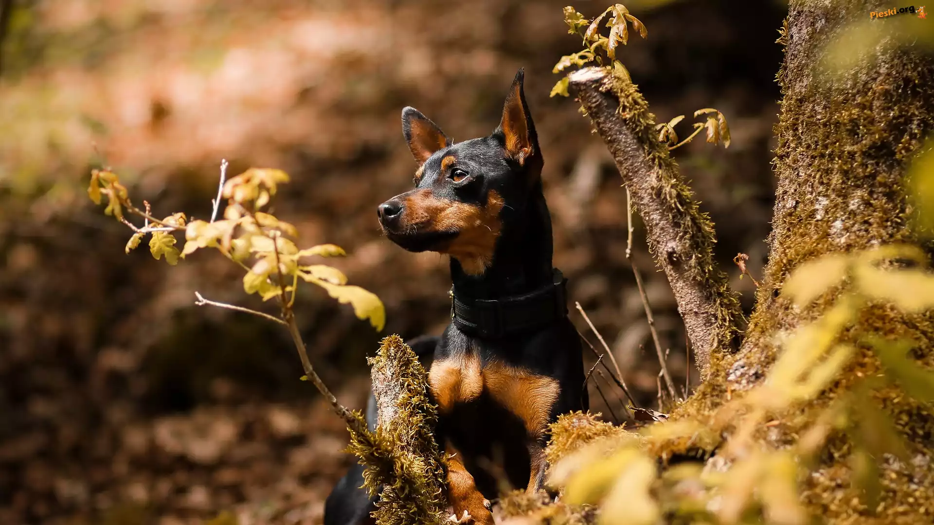 Rośliny, Pinczer miniaturowy, Pies, Drzewo, Liście, Pieski