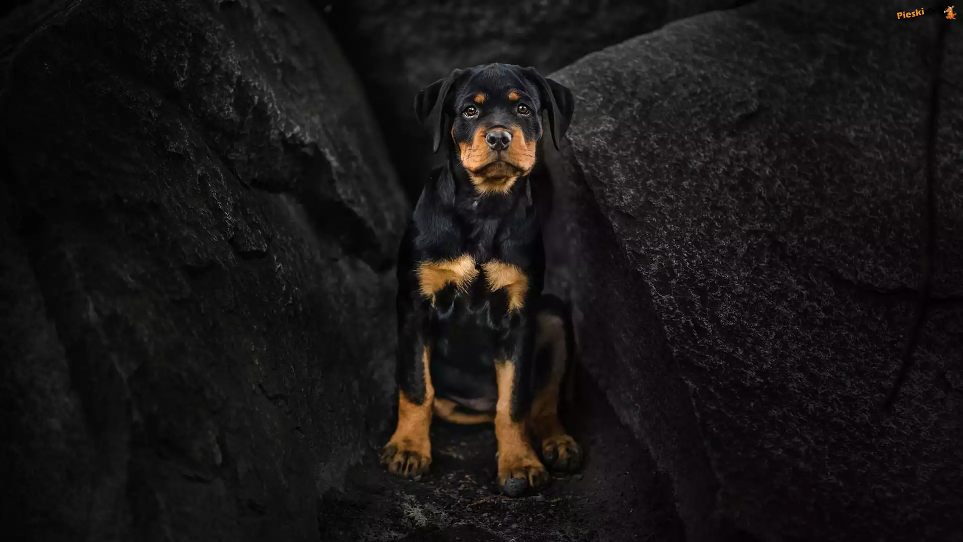 Rottweiler, Pies, Szczeniak, Skały, Pieski