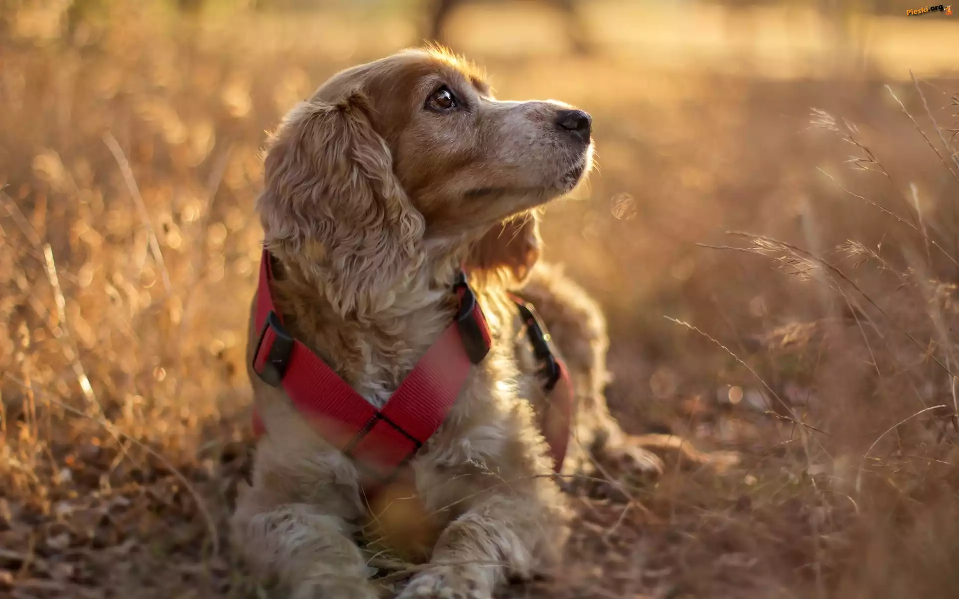 Trawy, Pies, Suche, Cocker spaniel angielski, Pieski