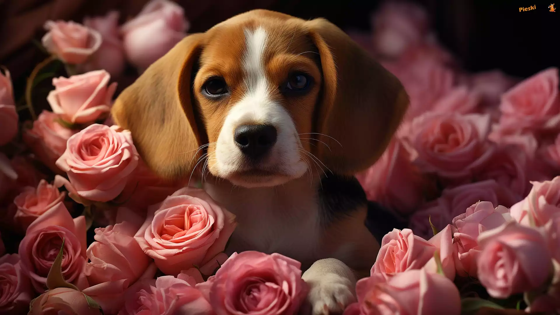 Mordka, Szczeniak, Beagle, Róże, Pies