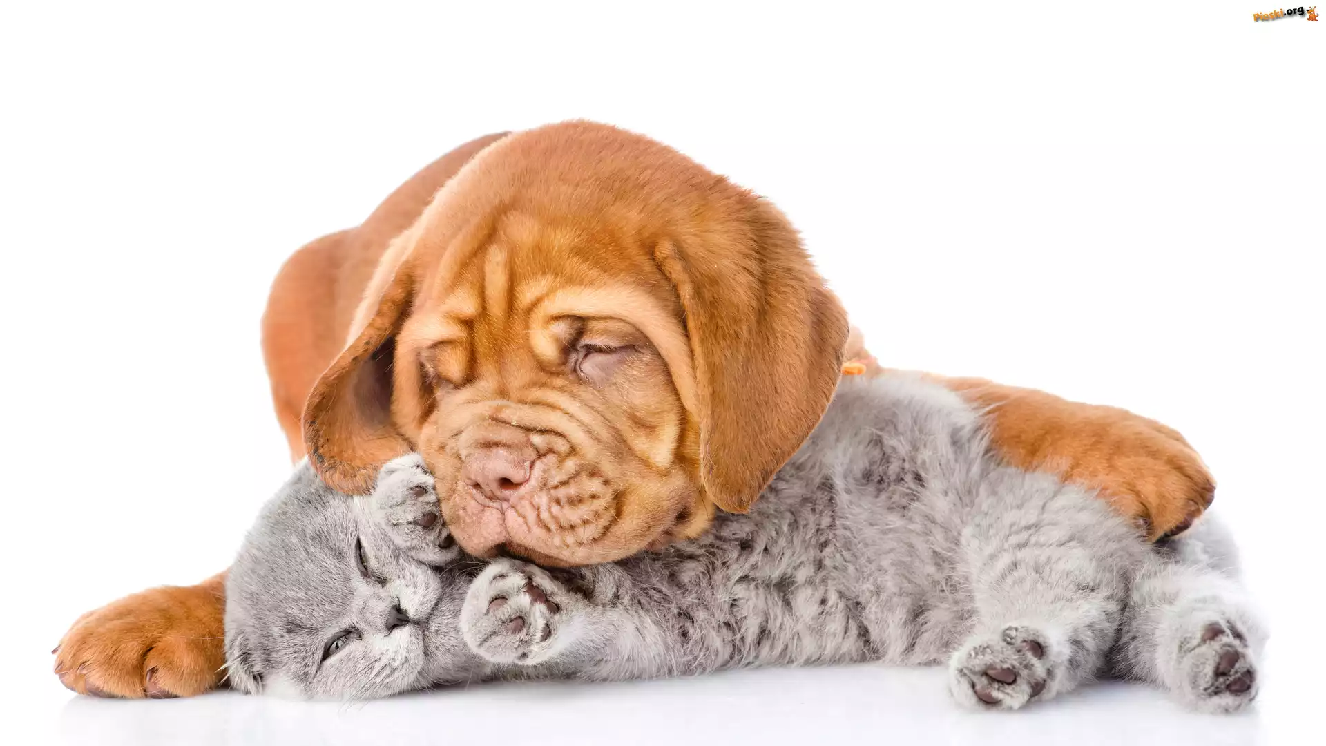 Białe, Szczeniak, Dog de Bordeaux, Kot, Tło, Pieski