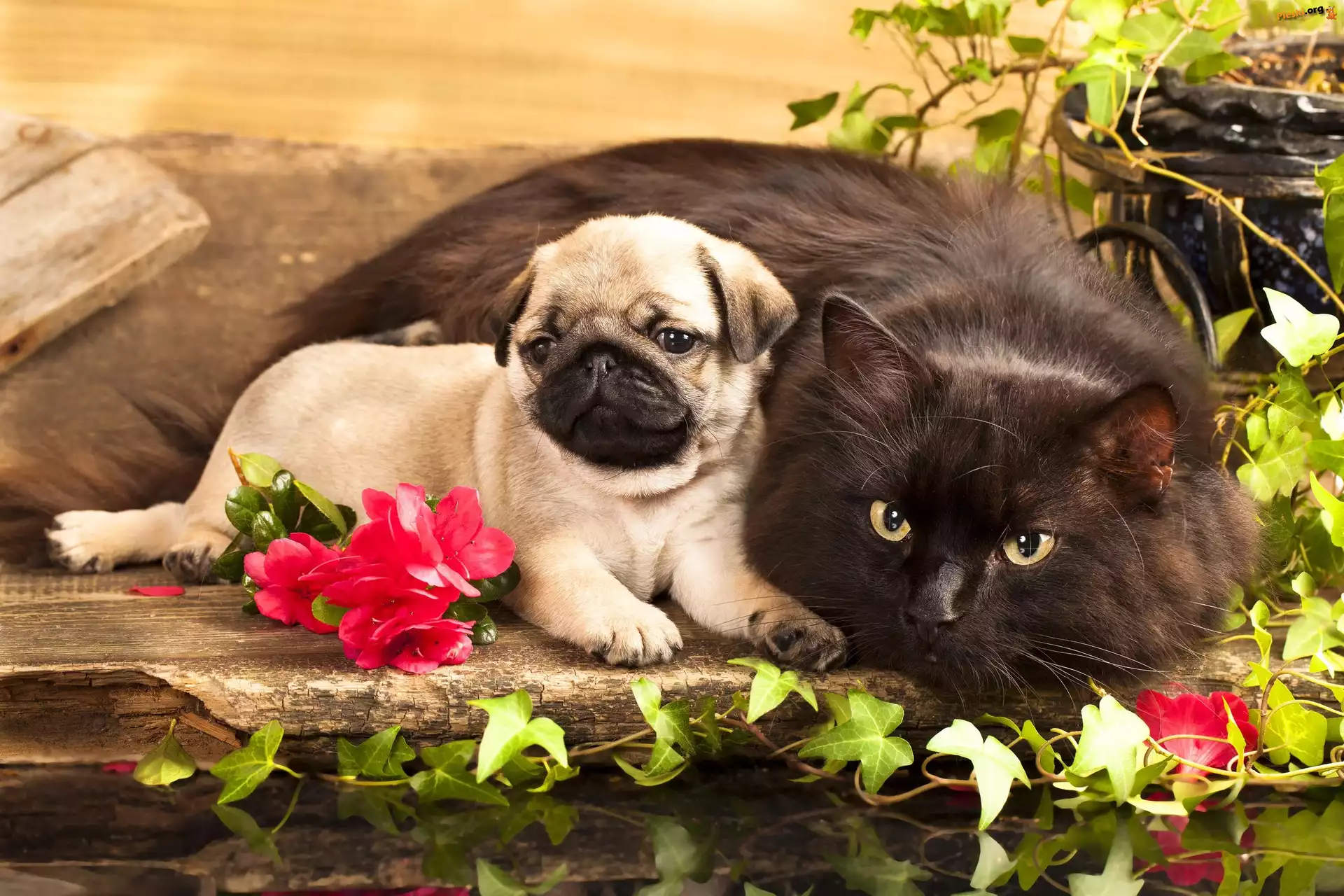 Kot, Szczeniak, Kwiatki, Pieski