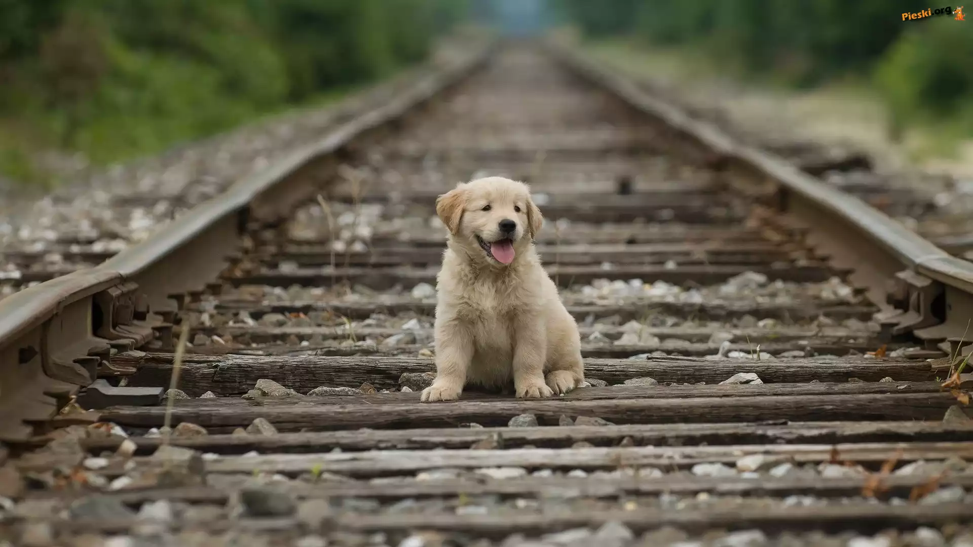 Szczeniak, Golden retverier, Tory kolejowe, Pieski