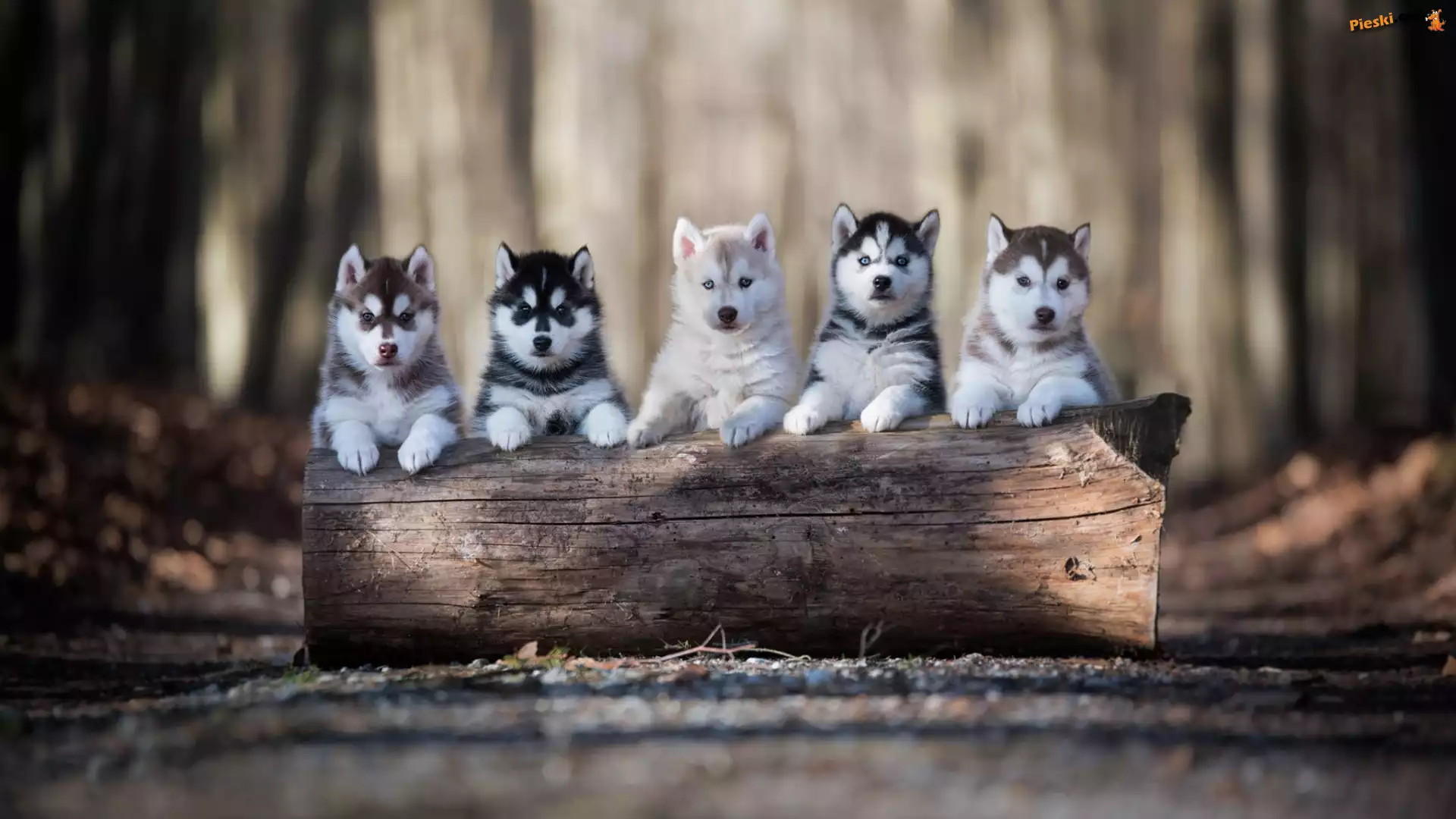 Szczeniaki, Siberian husky, Kłoda, Pieski