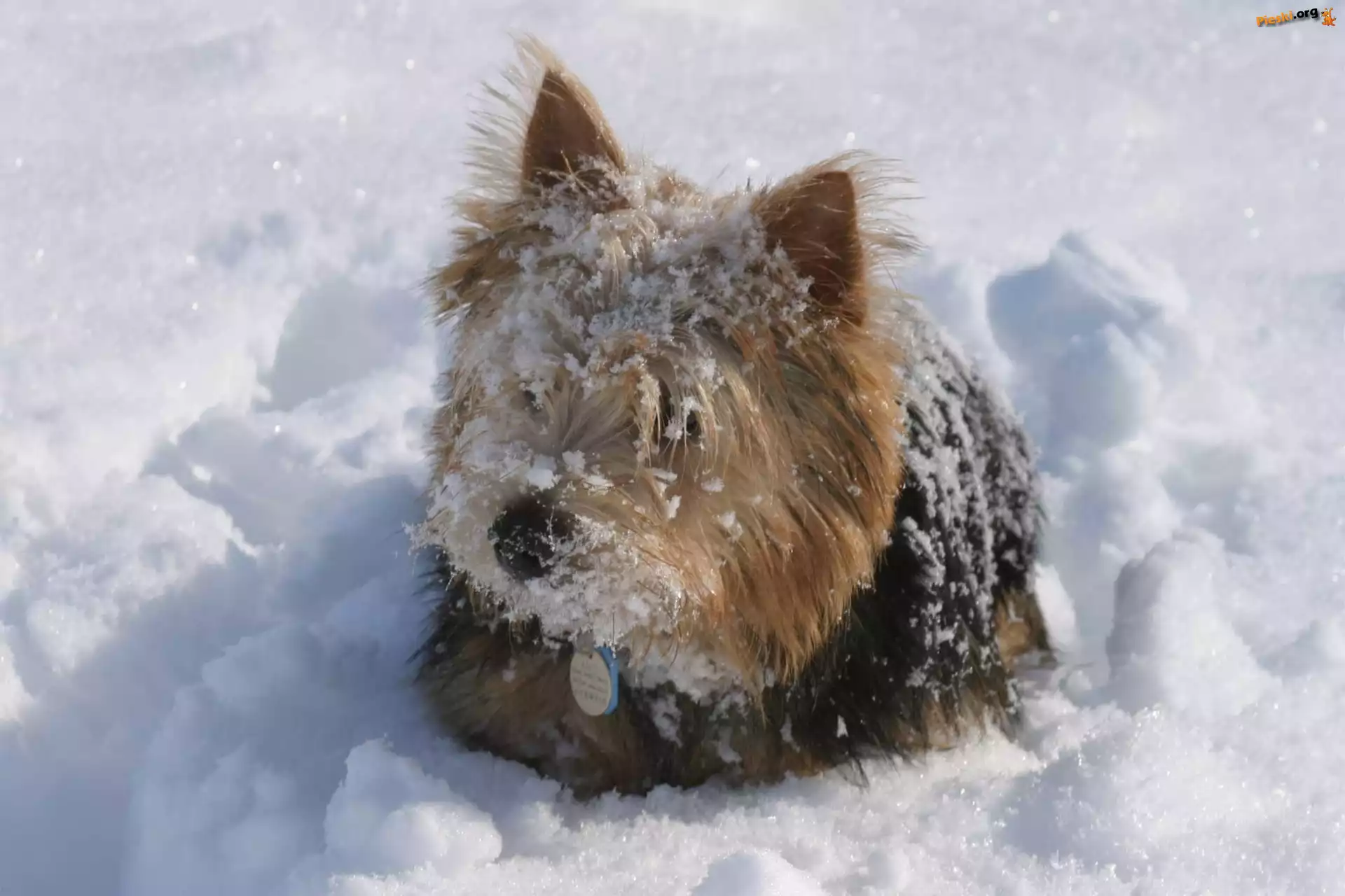 Norwich terrier Piesek, Norwich terrier czarno-rudy, Norwich terrier Norwich terrier, śnieg Pies, Czarna, Obroża