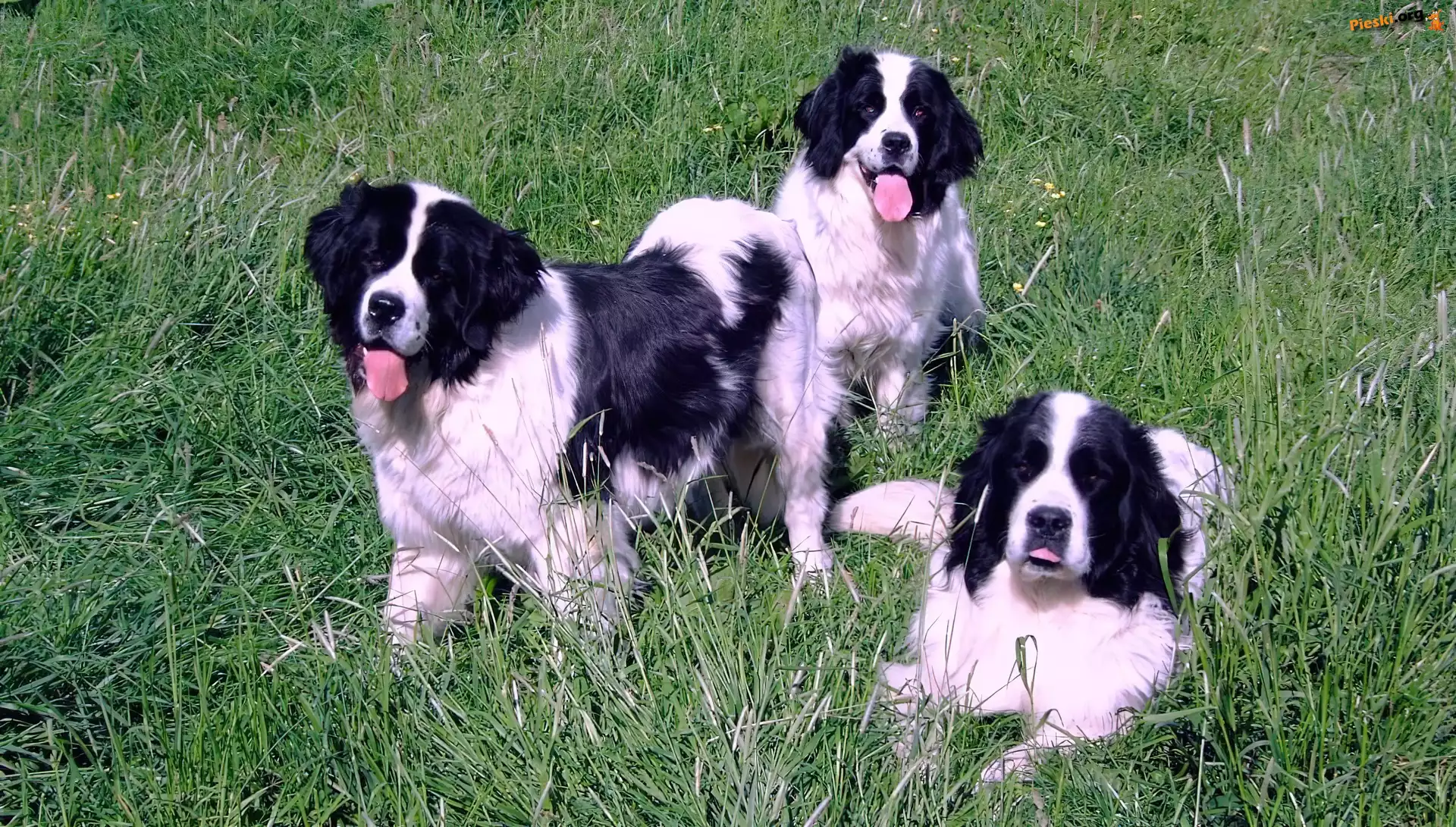 biegnący, Landseer Piesek, Łąka Kot, Pies, Słodkie morda, Landseera trzy, Landseery słodkie, szczeniaki, Landseery pysk, Landseera kratka, chustki, Landseer trawa, zielona, Landseer mordka, Landseera Morda, Landseera biało-czarny, Landseer