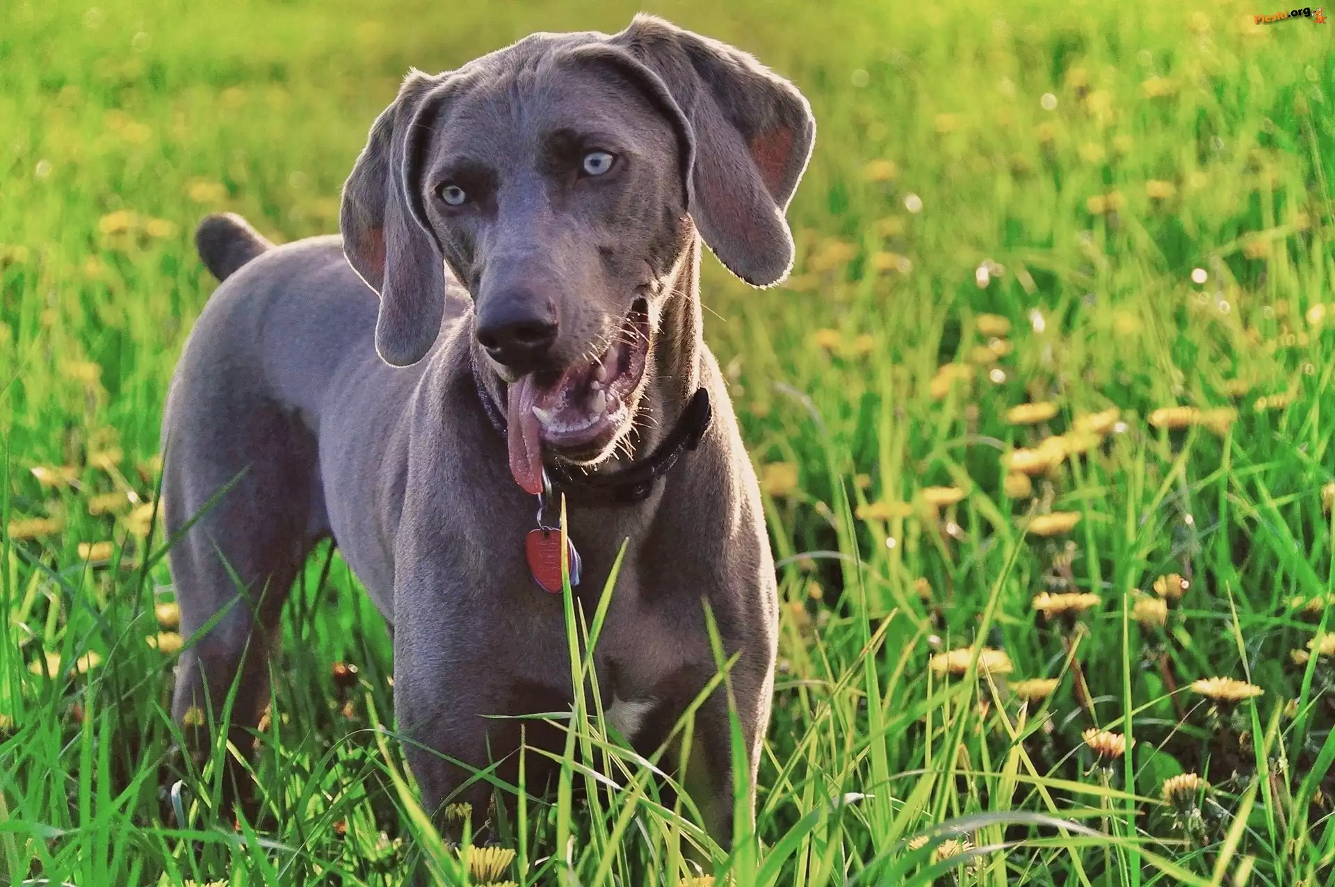 Wyżeł, Weimarski, Trawa, Pieski
