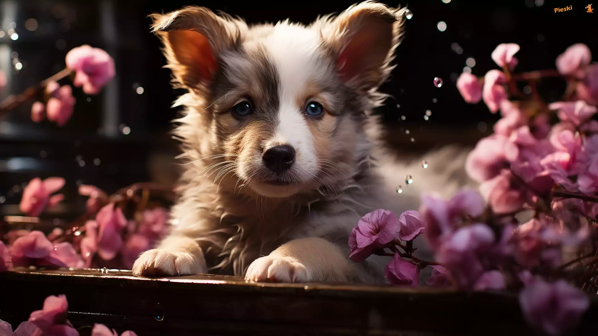 Suka, szczeniaki, Duy Munsterlander Owczarek, Szkocki, nieg Wyy, Woskie, Trawnik Pies, Zabawa Mordka, Pies, Spaniel kontynentalny miniaturowy Papillon, Licie Kobieta, Pies, Szczeniak Border collie Pies, Hawaczyk, Bieg Czarny owczarek niemiecki, Pies, nieg Szpic miniaturowy, Koszyk, Tulipany, Piesek, Pomeranian